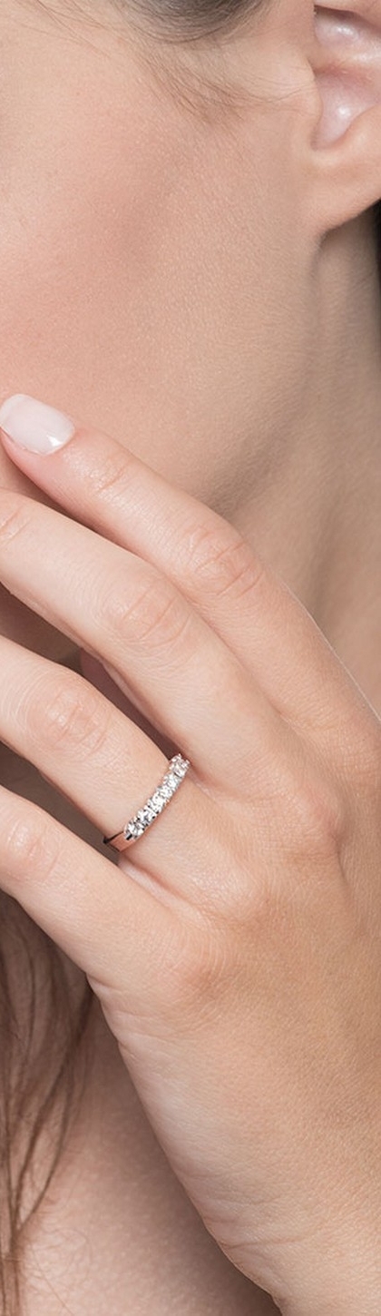 Anillo media alianza oro blanco 18 kilates y 9 diamantes