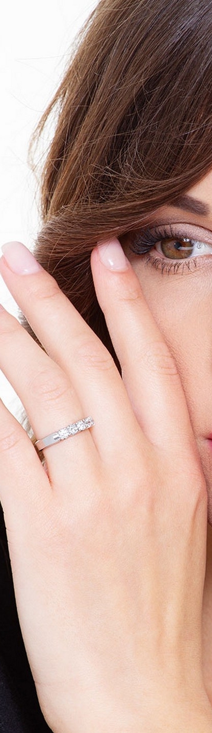 Media alianza en oro blanco 18 kilates con 5 diamantes 0,60 quilates