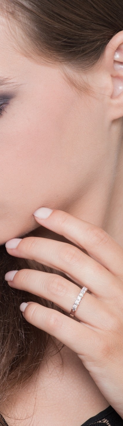 Anillo media alianza oro blanco 18 kilates y 9 diamantes