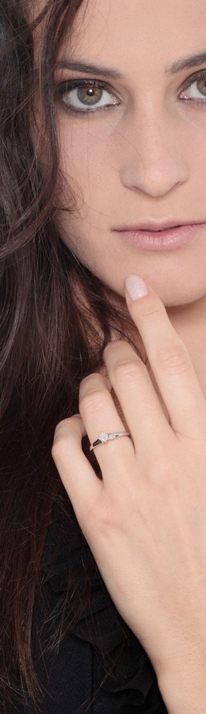 Anillo solitario en oro blanco 18 quilates con diamante, talla brillante, color H, pureza VS engastado en 4 garras.