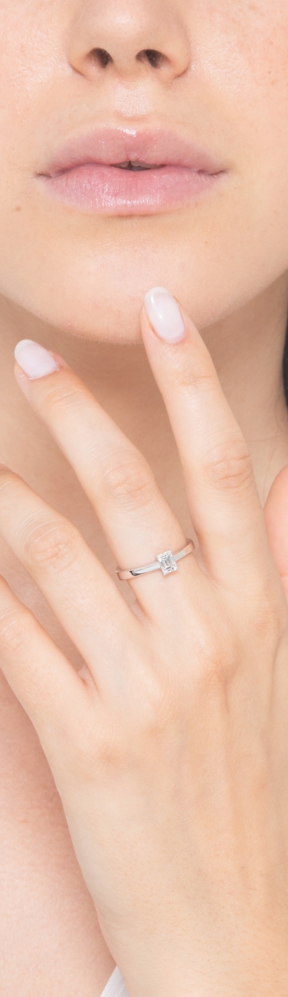 Anillo con diamante corte esmeralda 0,50 ct GIA en oro blanco 18k