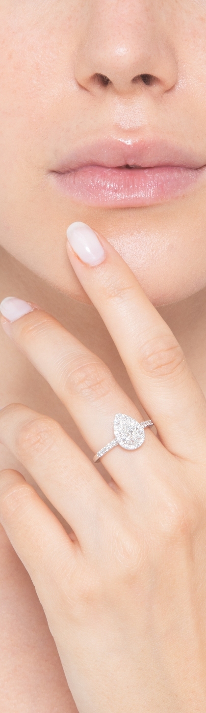 Anillo con diamante lagrima 1,00 ct GIA en oro blanco 18k