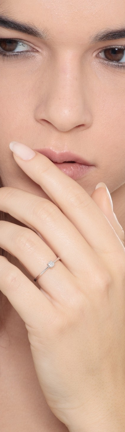 Anillo de compromiso en oro blanco de 18 kilates y diamante de 0,15 quilates