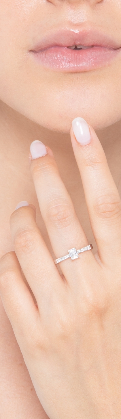Anillo diamante corte esmeralda 0,50 ct GIA en oro blanco 18k
