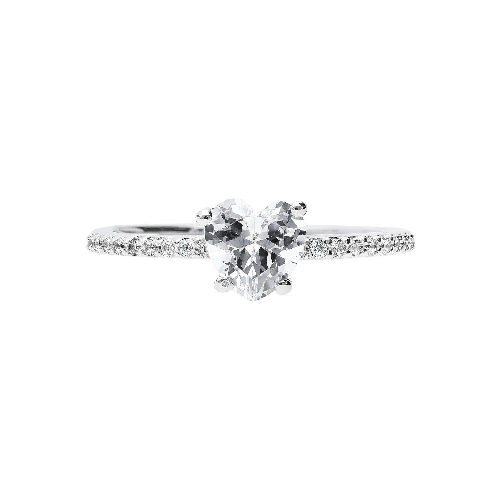 Anillo en oro blanco con circonita talla corazón y circonitas en el aro