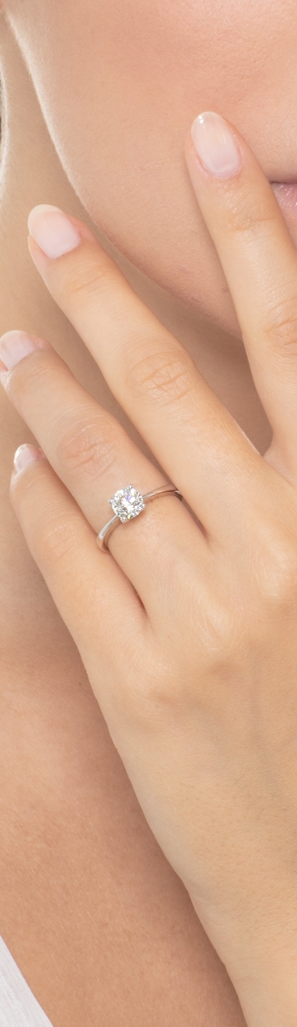 Anillo solitario lineal de cuatro garras en oro blanco de 18 quilates con diamante talla brillante, color G y pureza VS2