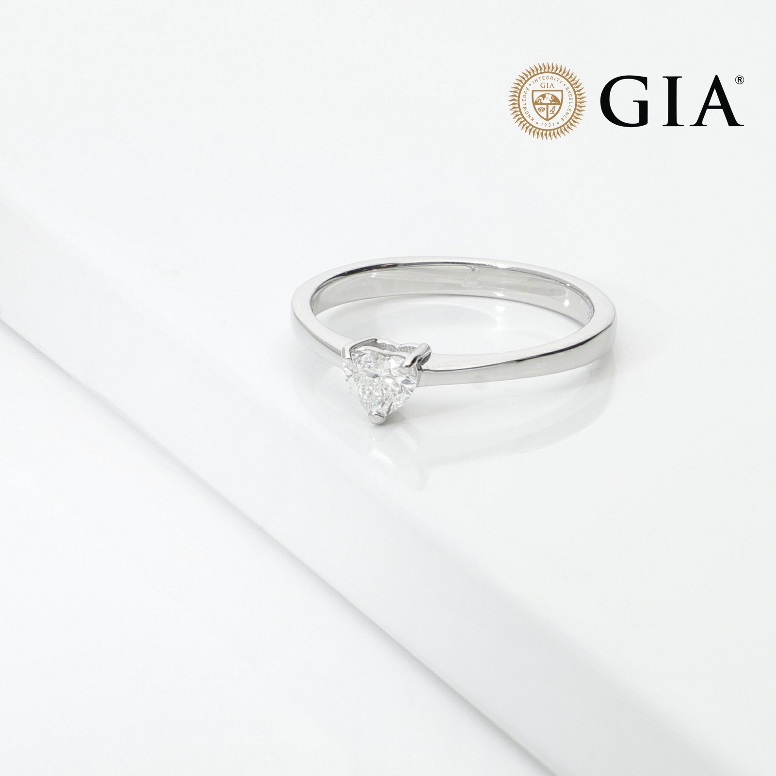 Anillo Oro Blanco 18k diamante corazón certificado GIA 0.30 ct