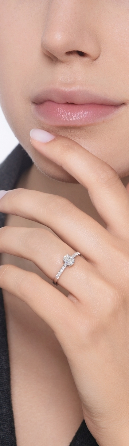 Anillo solitario 18K con diamante ovalado GIA 0.50CT y diamantes laterales