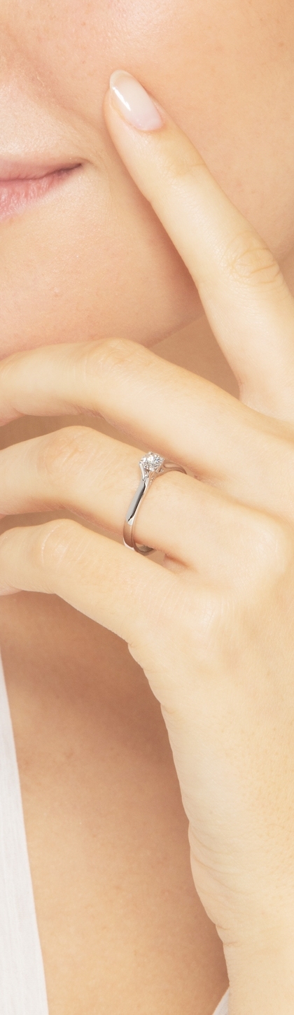 Anillo solitario 4 garras en oro blanco 18k con diamante 0,30 ct