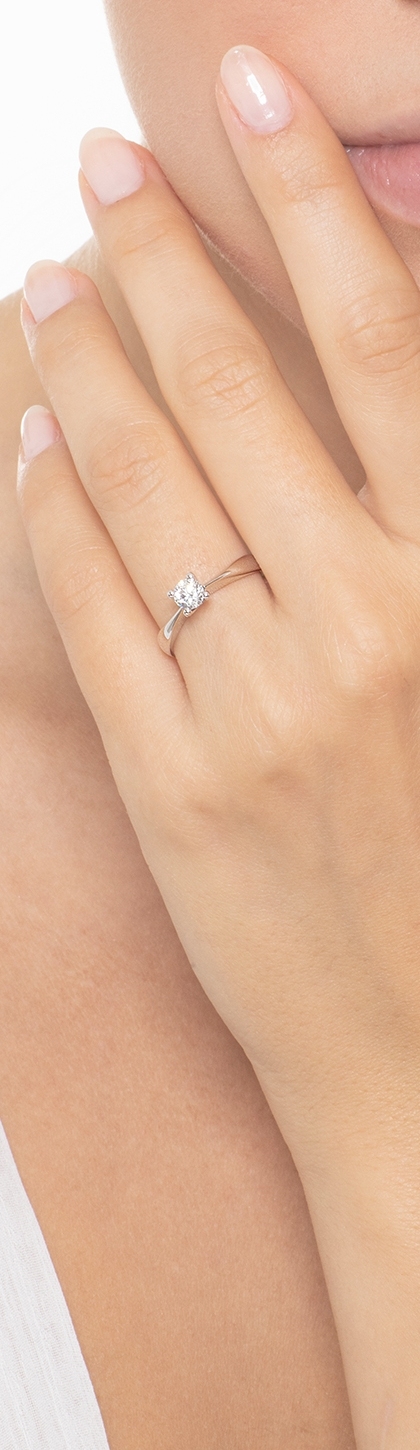 Anillo Solitario 4 Garras en Oro Blanco 18k con Diamante 0,40 ct