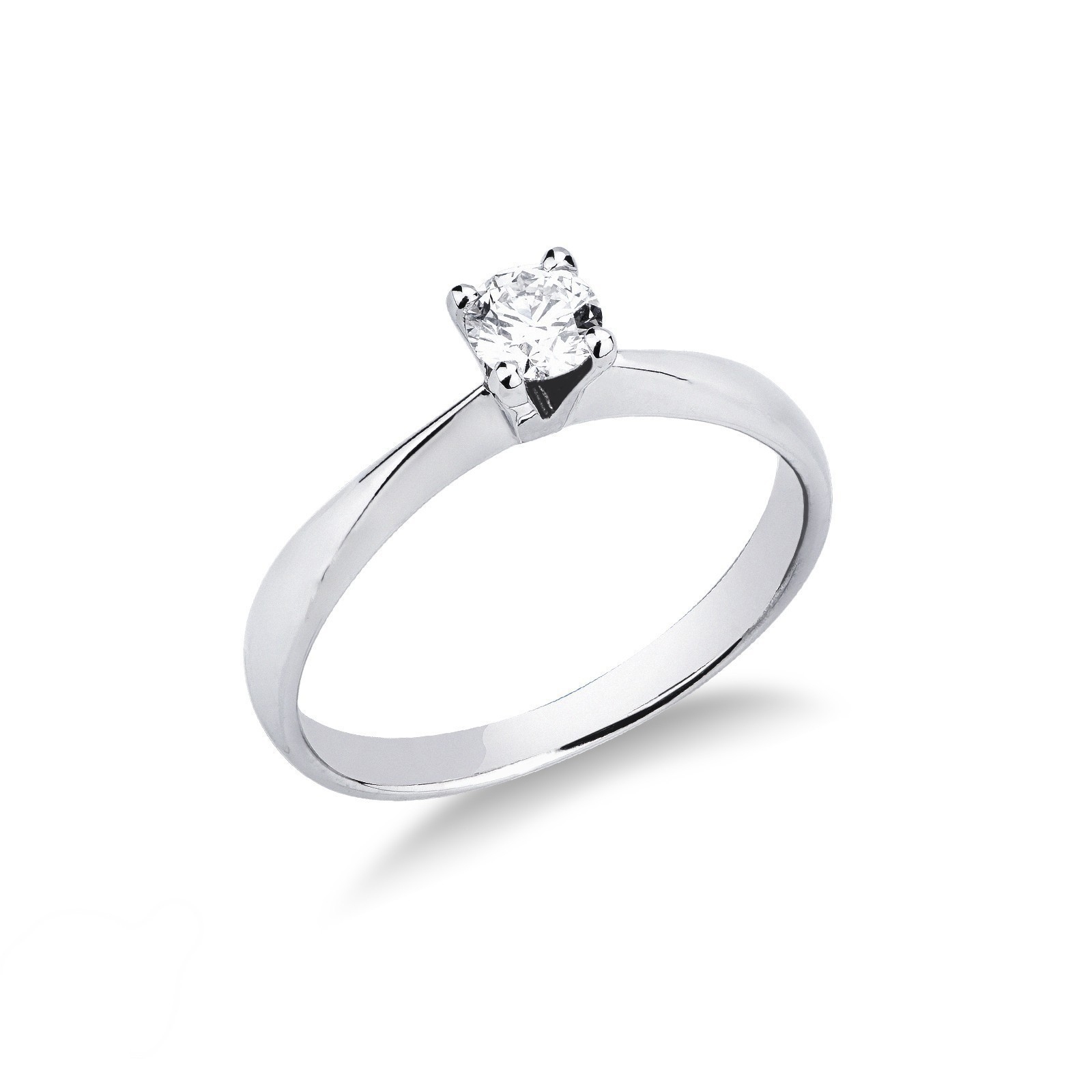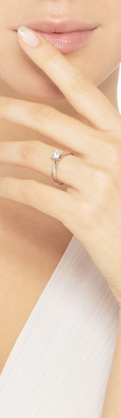 Anillo Solitario 4 Garras en Oro Blanco 18k con Diamante Brillante 0,50 ct