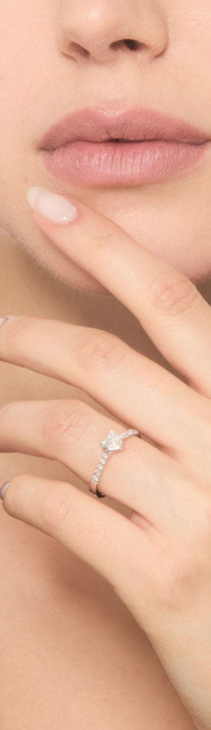 Anillo solitario corazón oro blanco 18k adornado con diamante natural 0.50 GIA