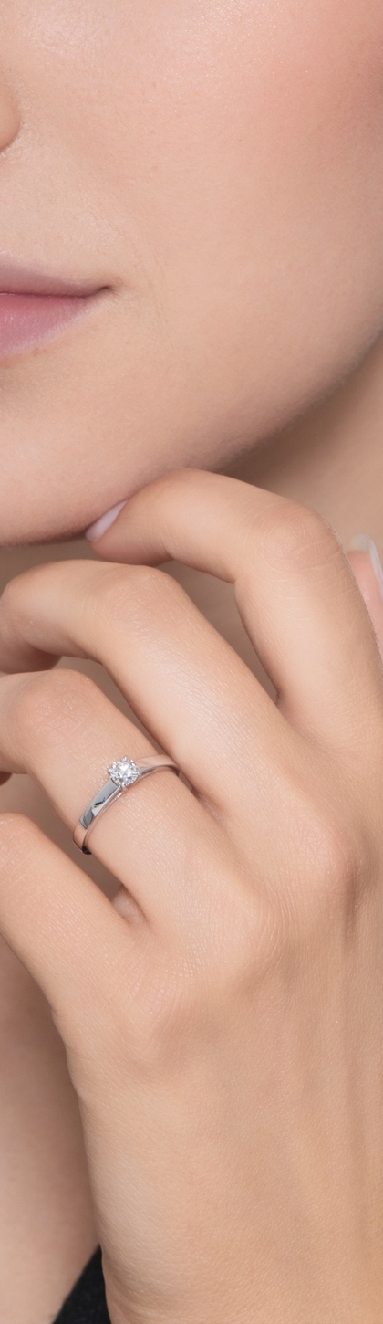 Anillo solitario de cuatro garras en oro blanco 18k con diamante CT 0,30