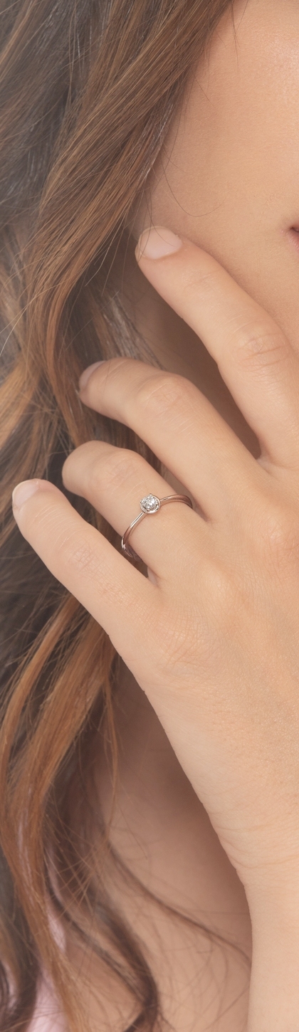 Anillo solitario diamante 0,15 ct y oro blanco 18 k