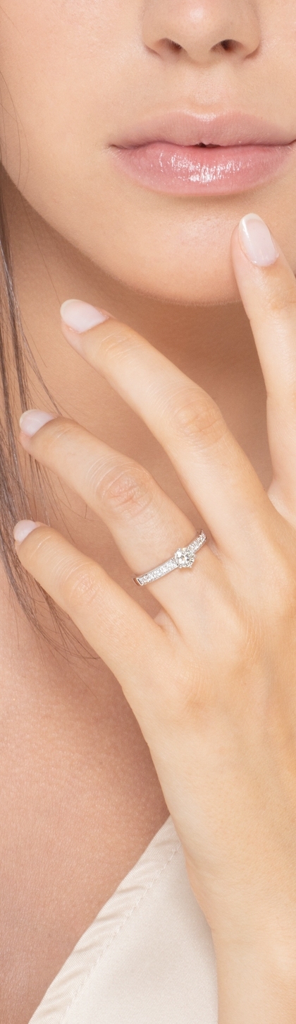 Anillo solitario en oro blanco 18 ct con diamante central 0,40 ct