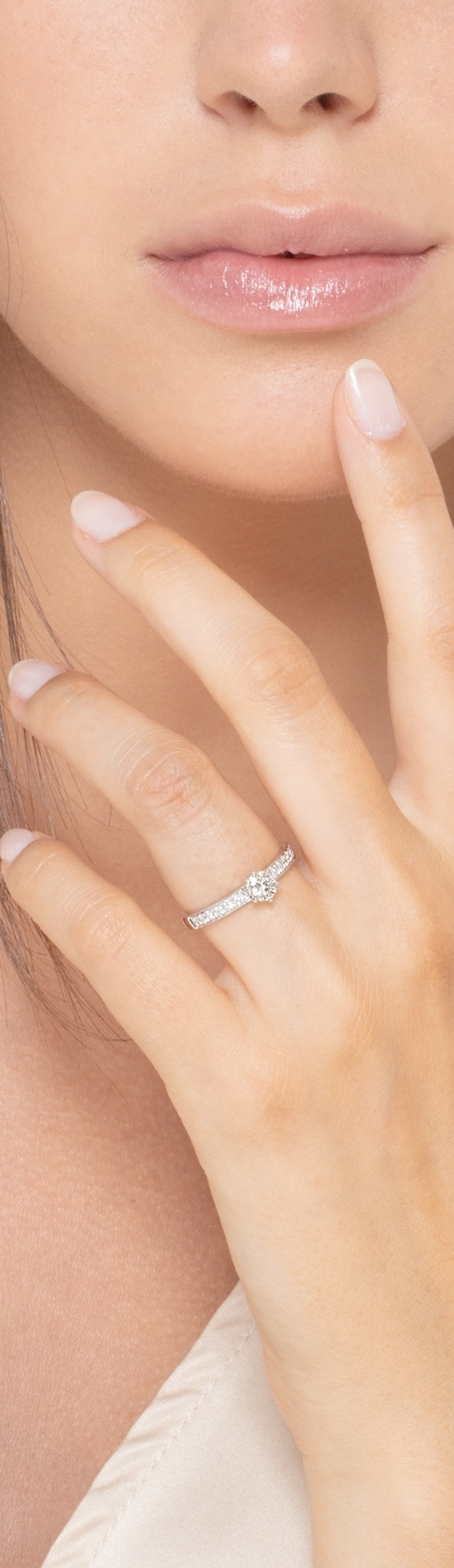 Anillo solitario en oro blanco 18 quilates y diamante central 0,50 ct