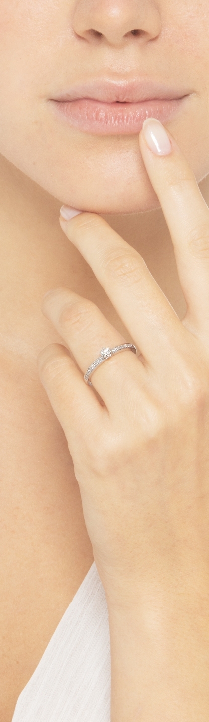 Anillo solitario en oro blanco 18ct con 6 garras y diamantes en el engaste