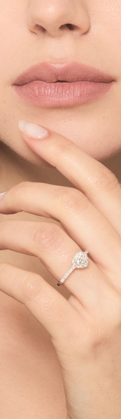 Anillo solitario en oro blanco 18k con diamante corazón certificado GIA CT.0.70