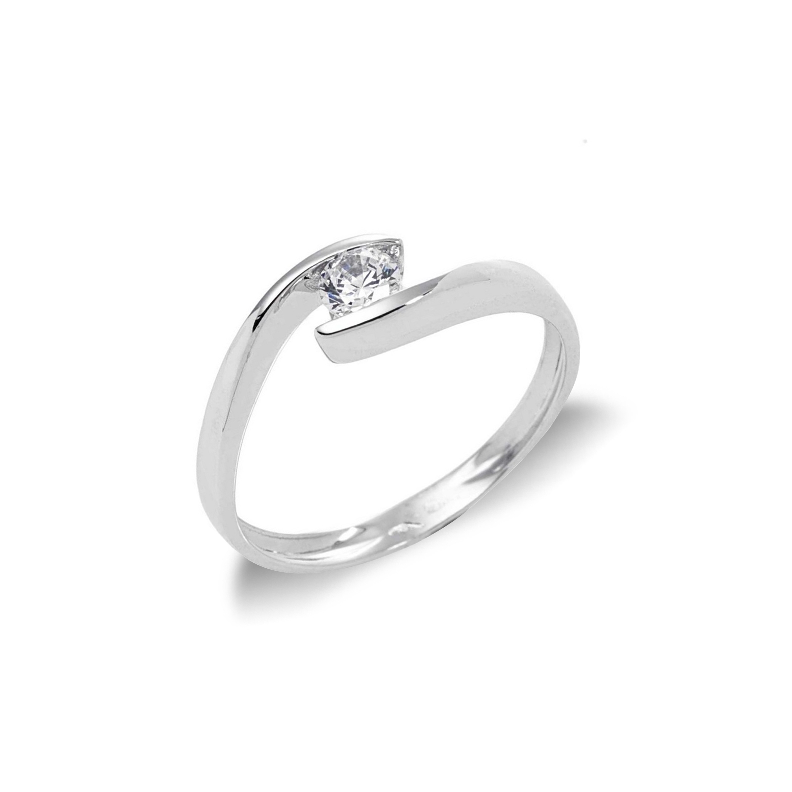 Anillo solitario en oro blanco de 18 quilates con circonita