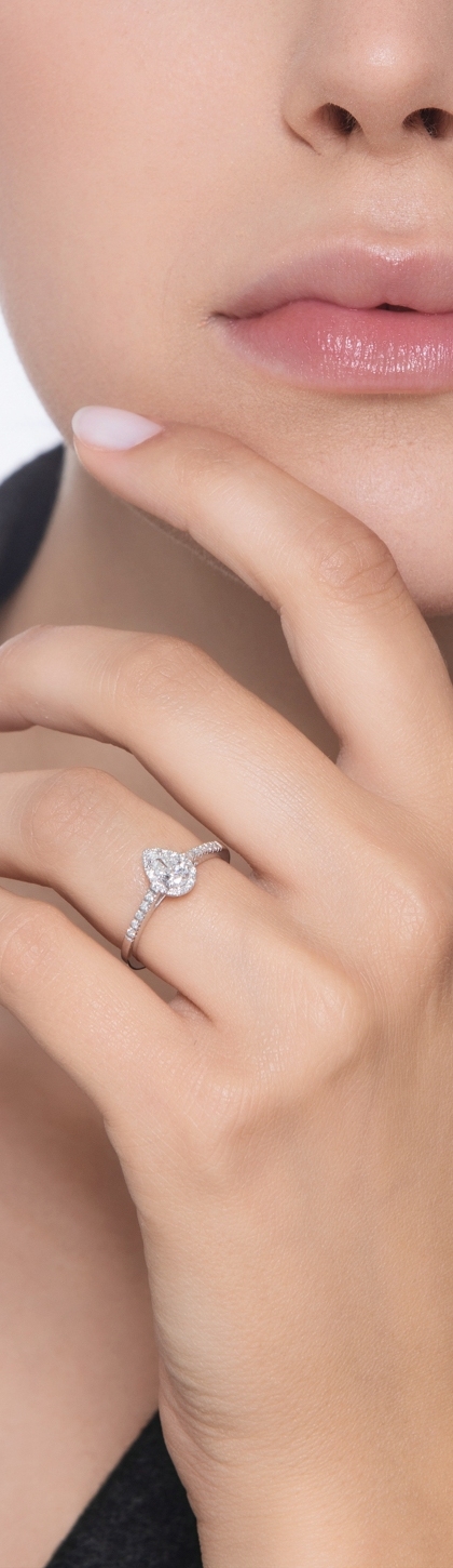Anillo solitario en oro blanco de 18 quilates con diamante gota GIA 0.30ct