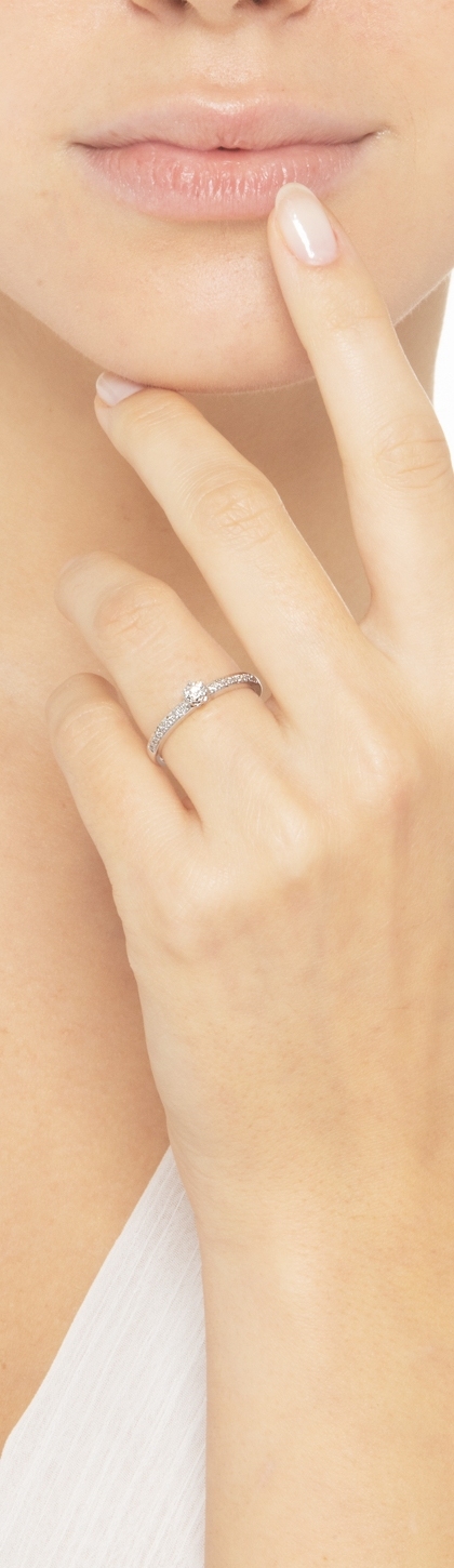 Anillo solitario en oro blanco de 18 quilates Y 8 diamantes