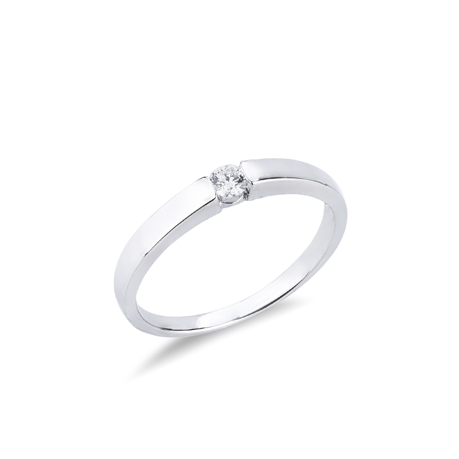 Anillo solitario en oro blanco de 18k con diamante brillante 0.10CT