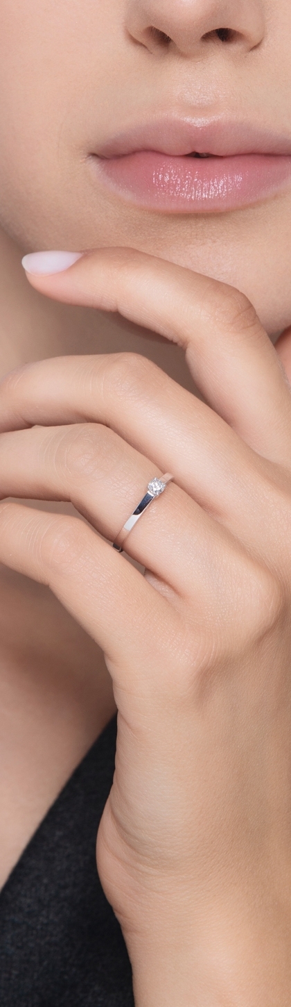 Anillo solitario en oro blanco de 18k con diamante CT 0,15