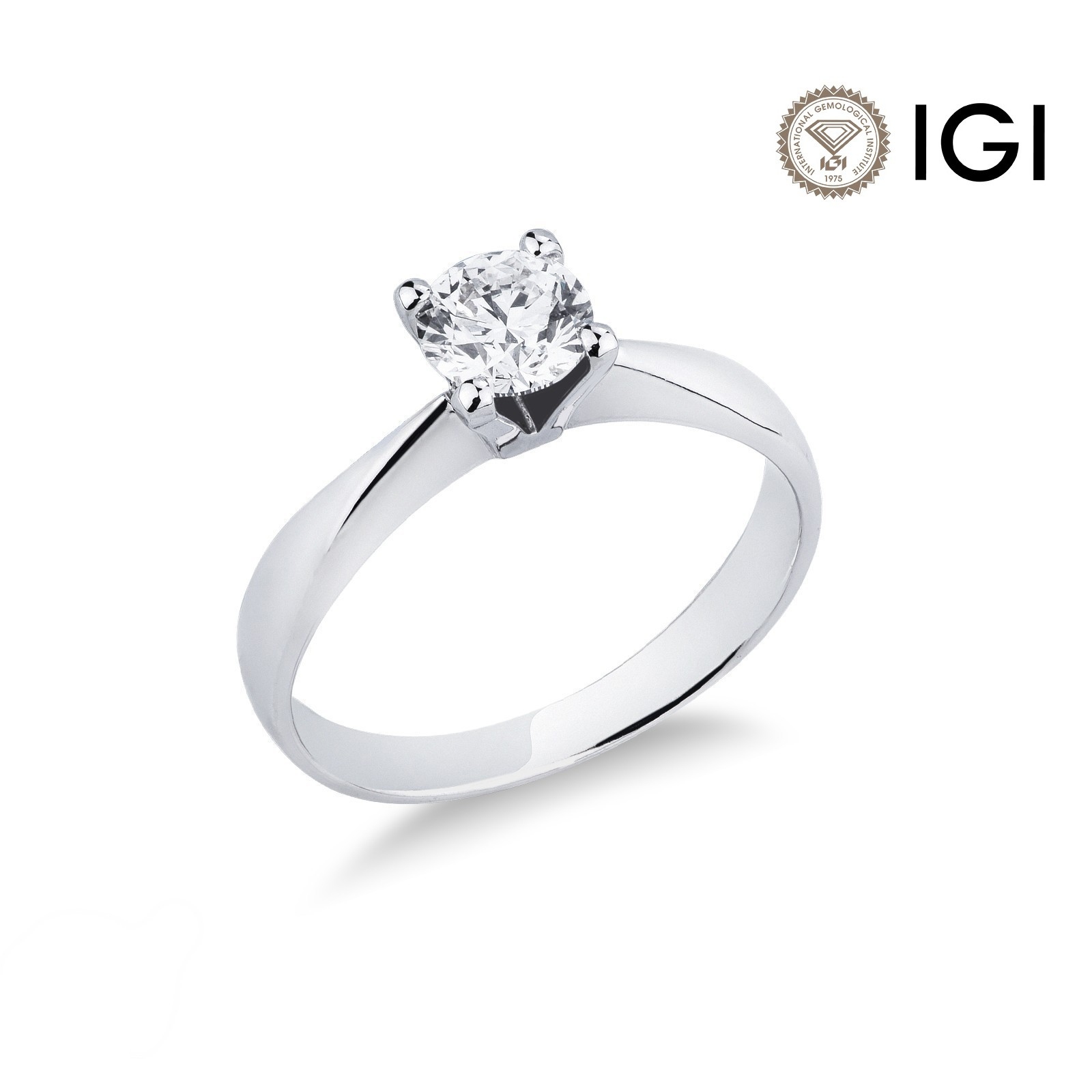 Anillo solitario lineal con diamante 1 carato en oro blanco 18k
