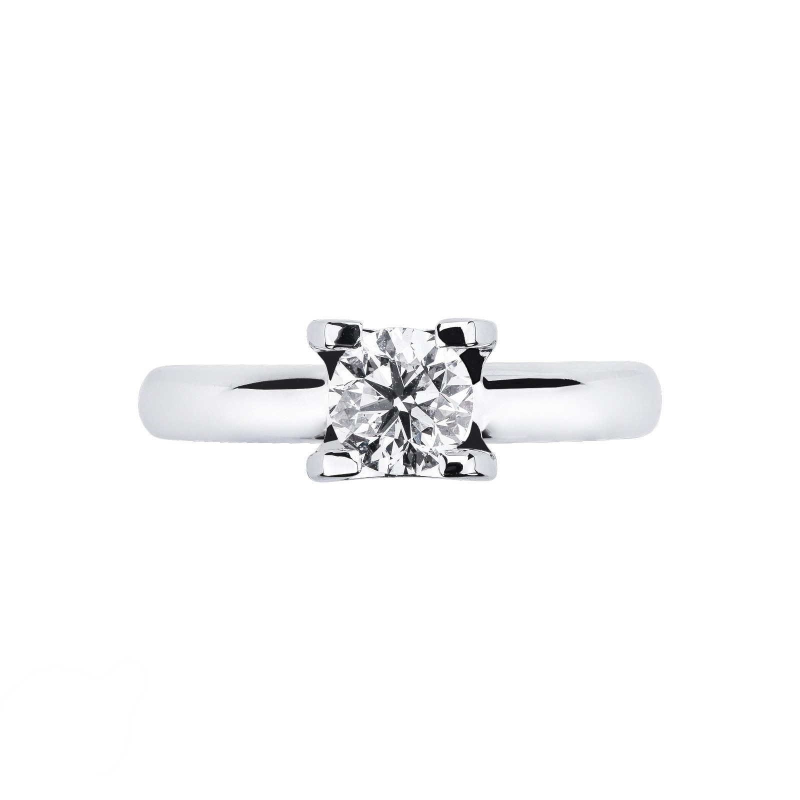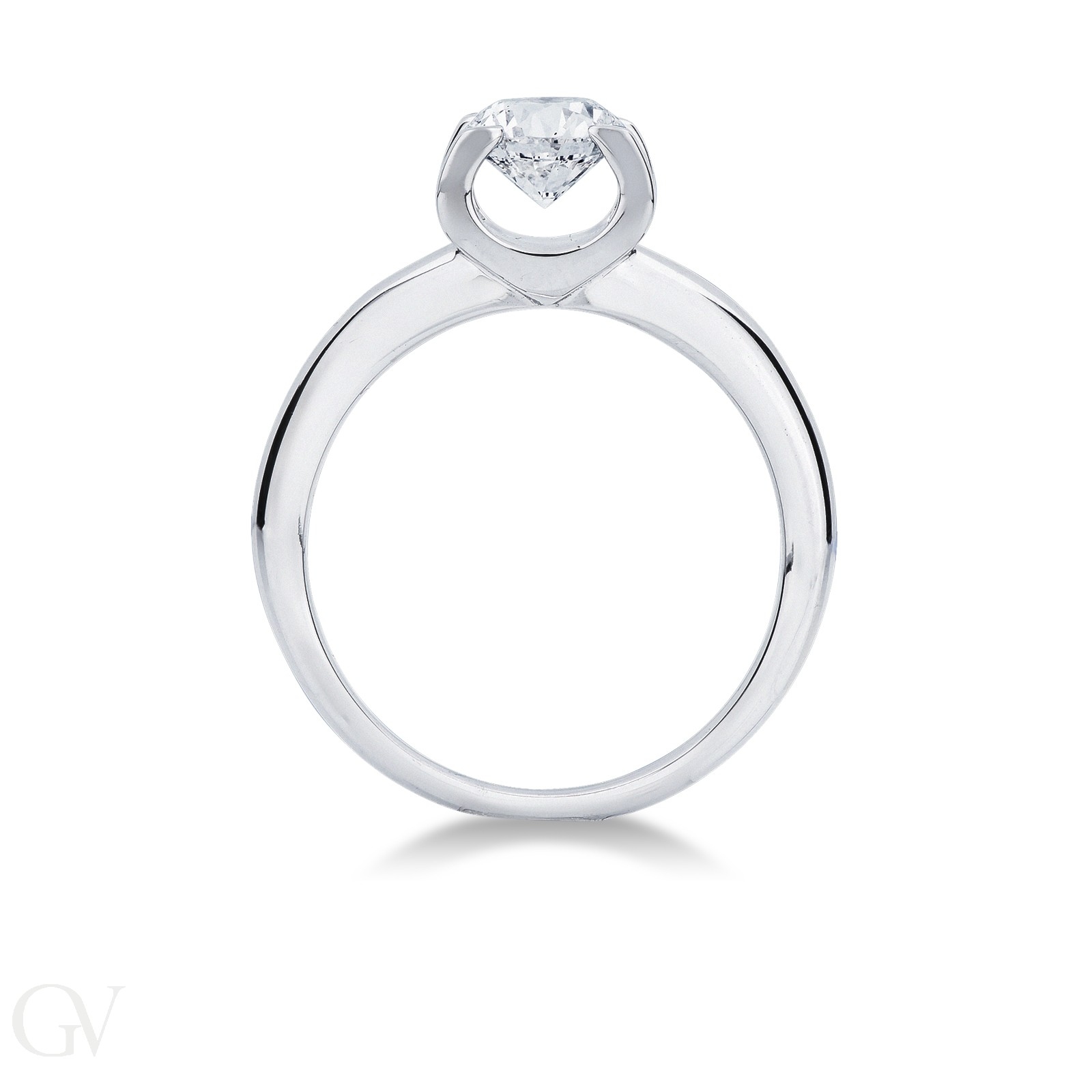 Anillo solitario lineal en oro blanco 18k con diamante 0.90ct