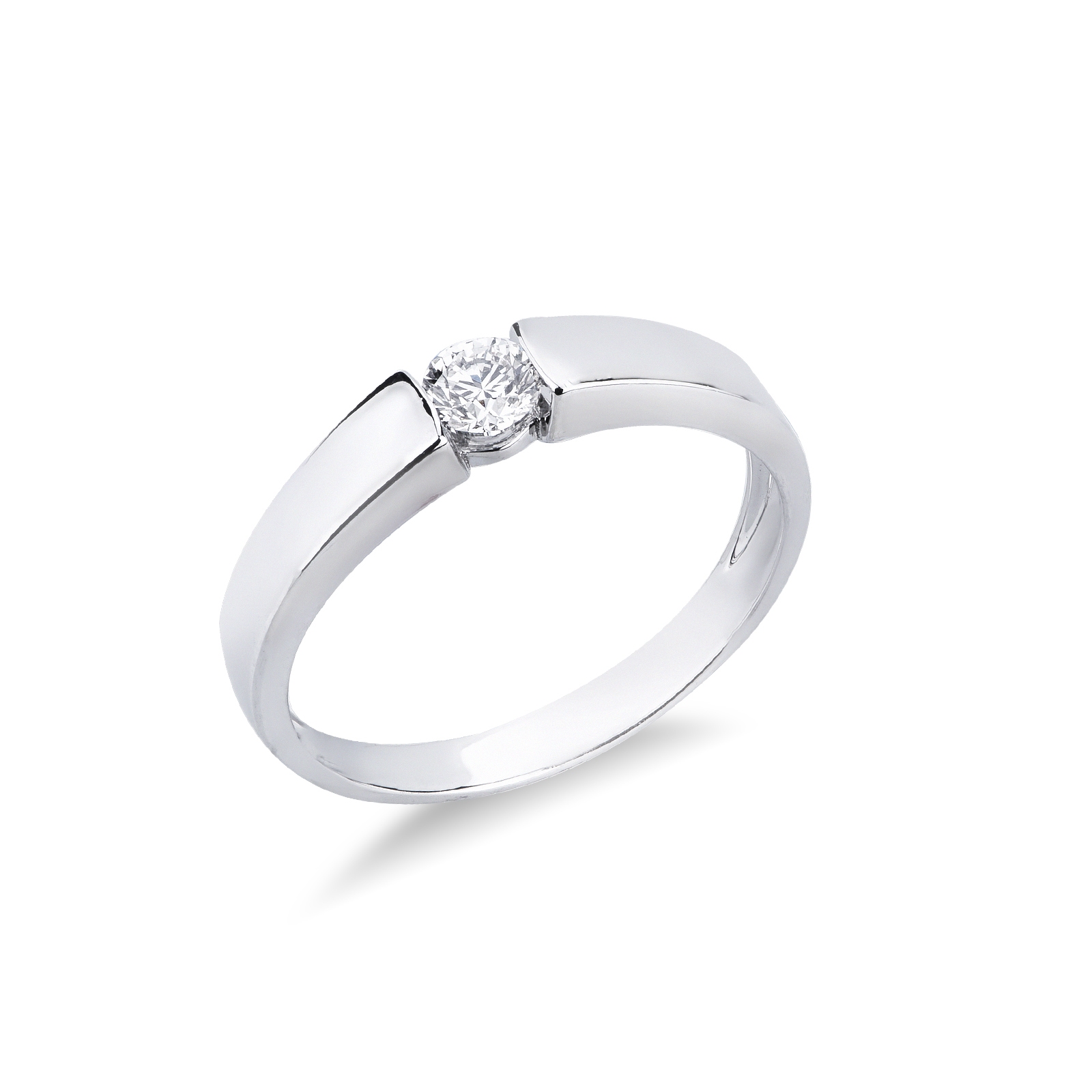 Anillo solitario moderno en oro blanco 18k con diamante 0,20ct