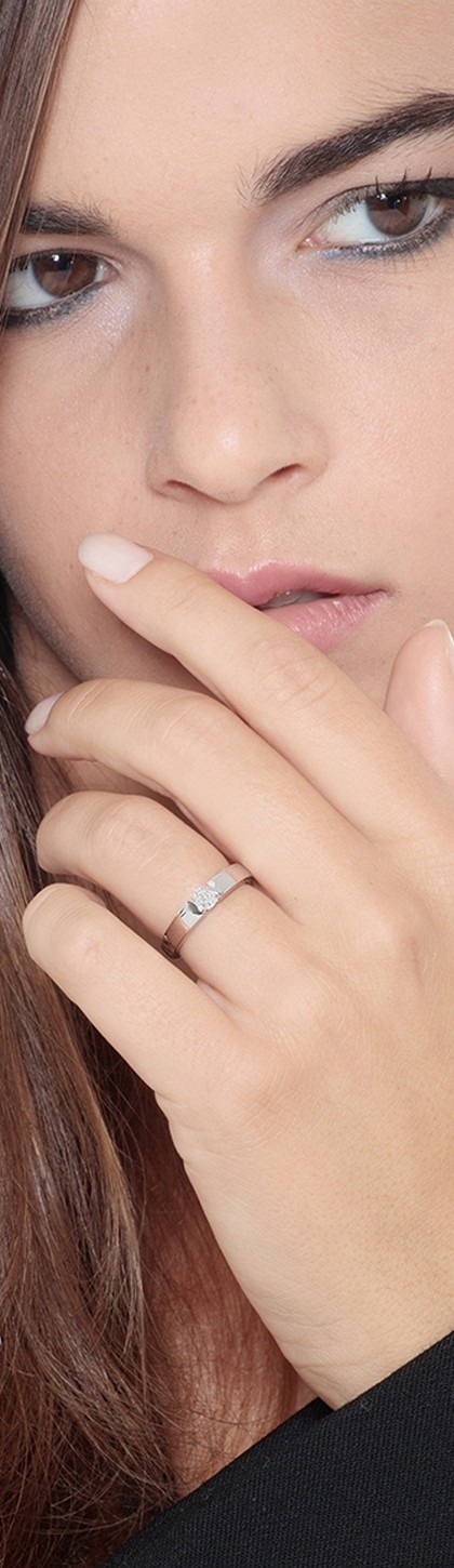 Anillo solitario moderno en oro blanco 18k con diamante 0,25ct