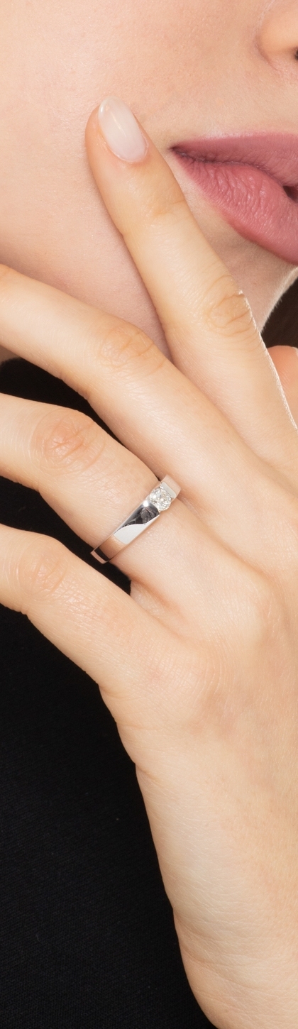 Anillo solitario moderno en oro blanco 18k con diamante 0,30ct