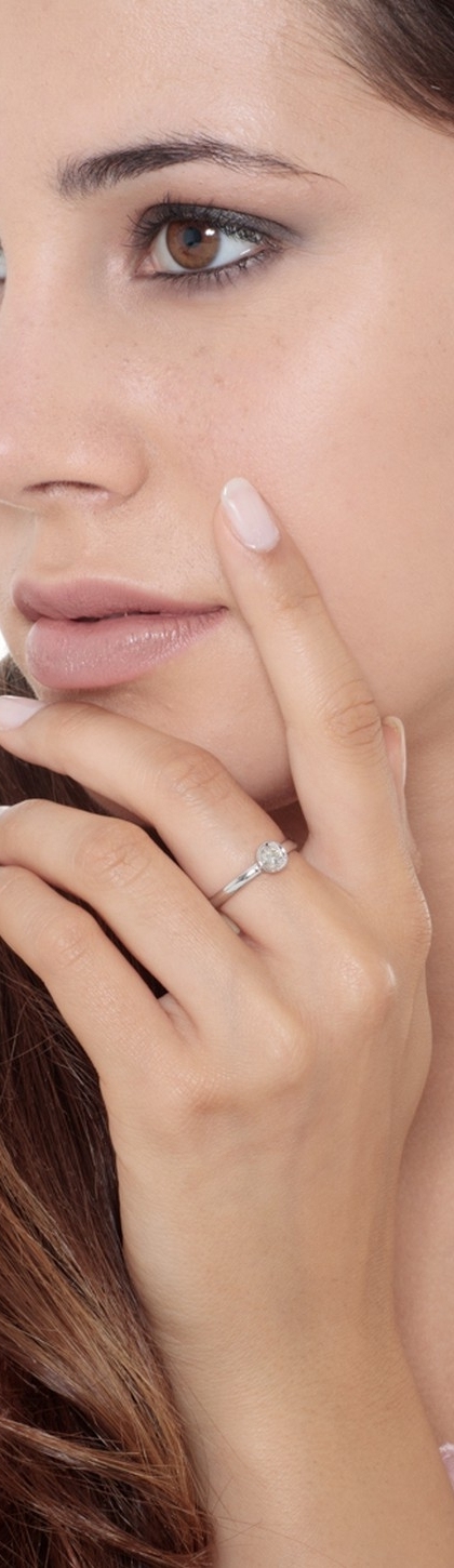 Anillo solitario oro blanco 18 kilates con diamante a bisel 0,25 quilates