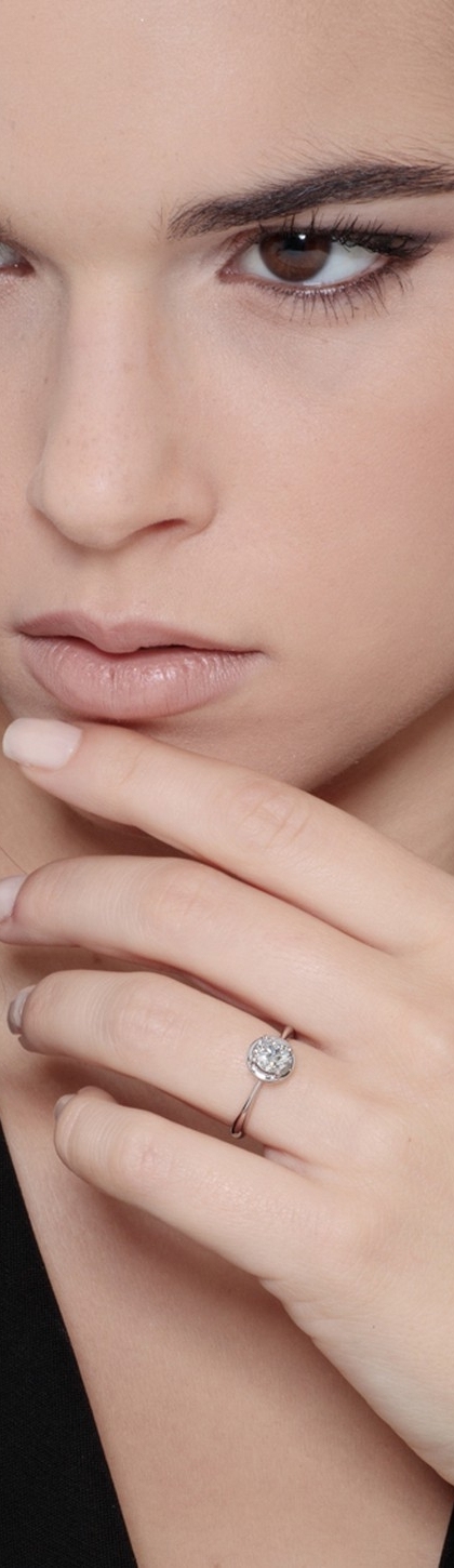 Anillo solitario oro blanco 18k con diamante corte brillante ct. 0,70