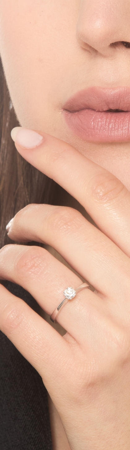Anillo solitario oro blanco 18k con ocho garras y diamante