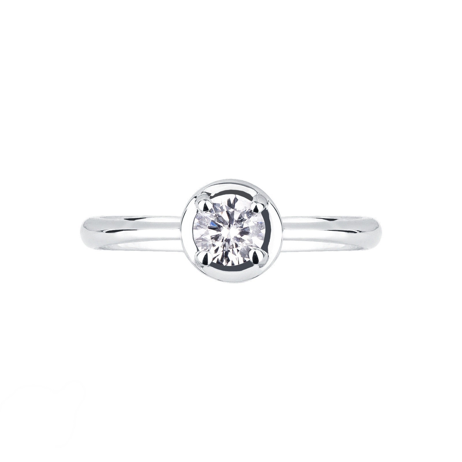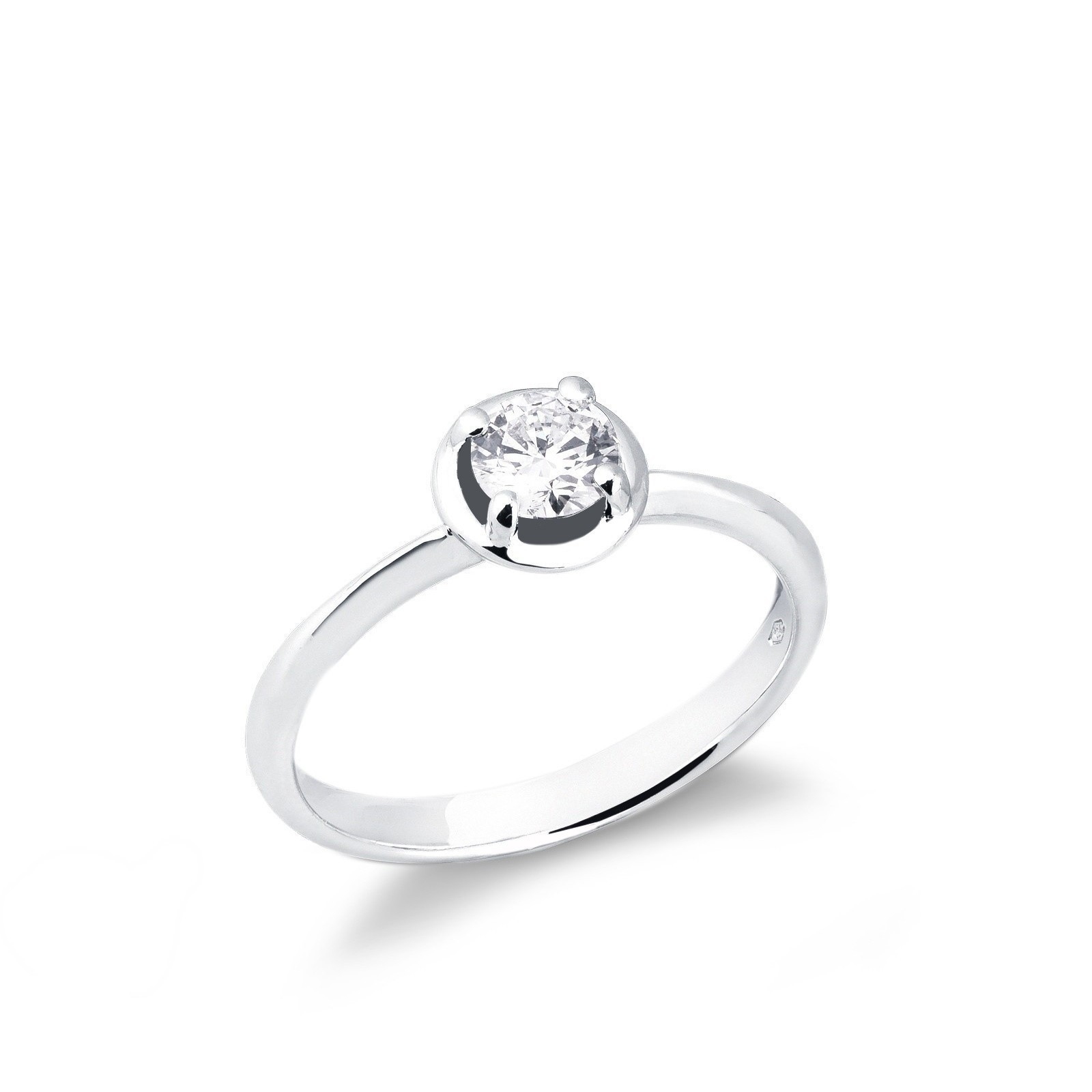 Anillo solitario en oro blanco 18k con montura de cuatro garras y gambo lineal, con diamante central de 0.40ct corte brillante, color H y pureza VS. Diseño clásico y elegante, perfecto como anillo de compromiso o regalo especial. La calidad de los diamantes garantiza máxima luminosidad y sofisticación.