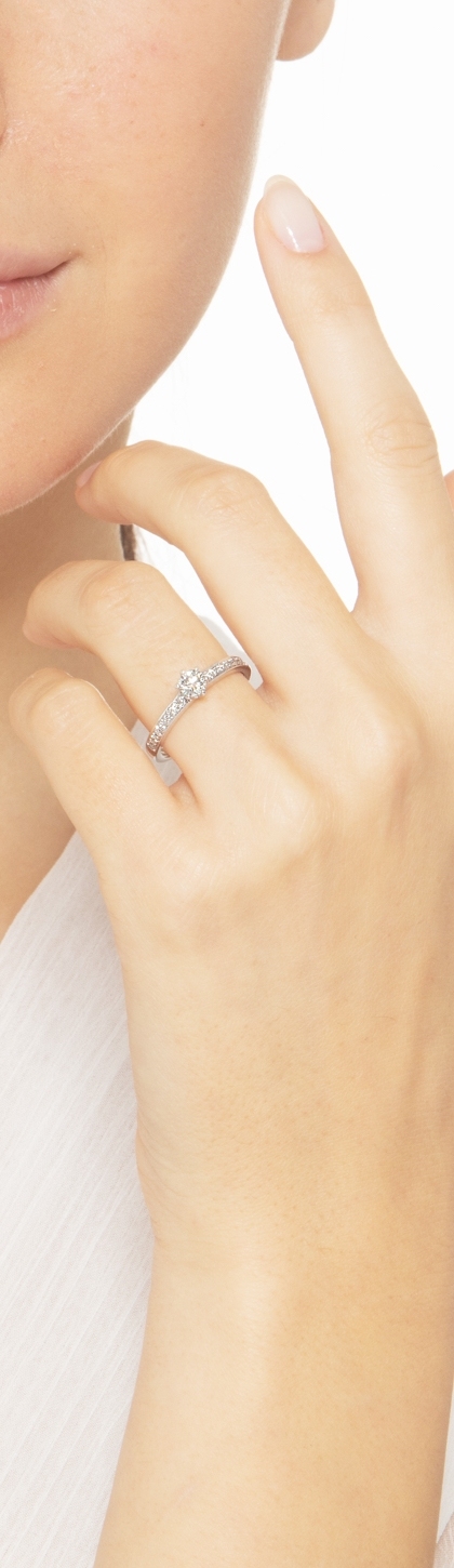 Anillo tipo solitario en oro blanco de 18 quilates con siete diamantes