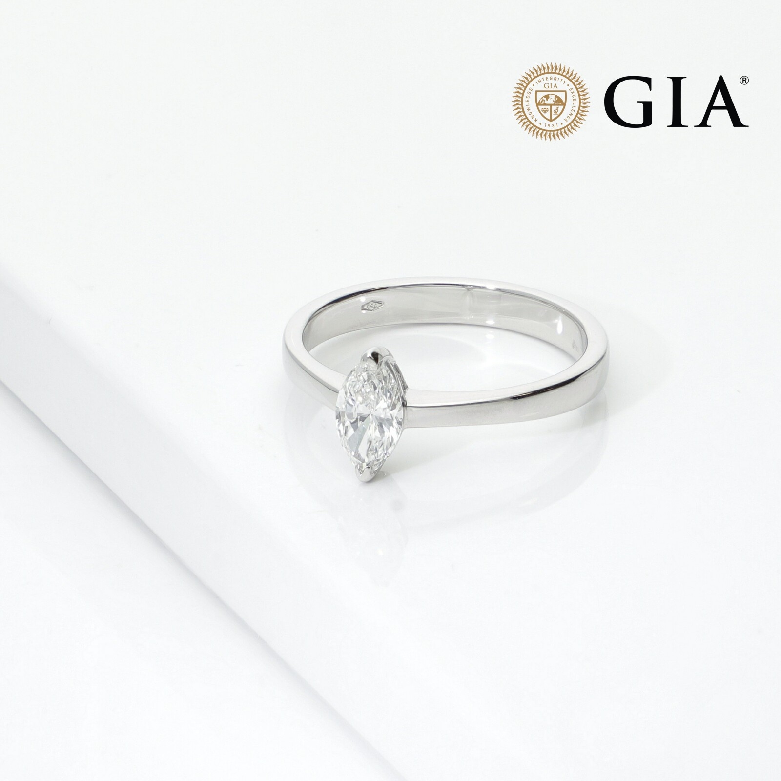 Solitario con diamante marquise GIA 0,50 ct Oro Blanco 18k