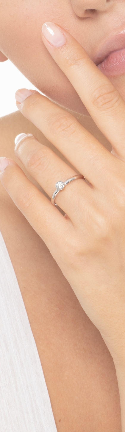Solitario oro blanco 750 y diamante 0,15 quilates con bisel