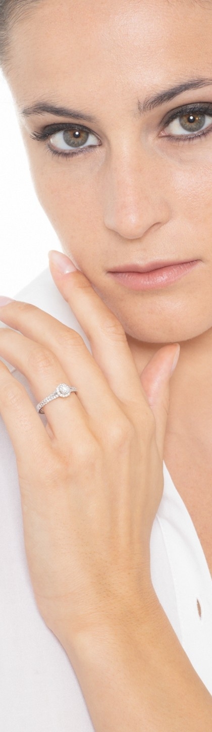 Sortija diamante central 0,30 quilates y doble aro engastado con diamantes