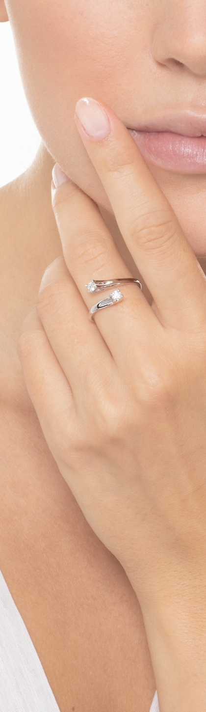 Anillo bilogy en oro blanco de 18k con diamantes