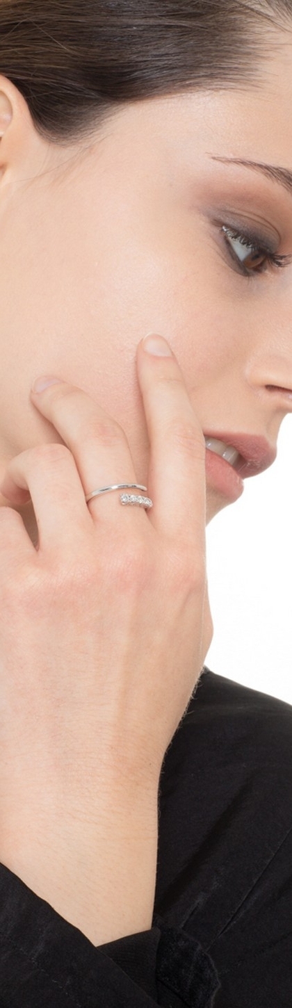 Anillo contrarié abierto oro blanco 18k con diamantes