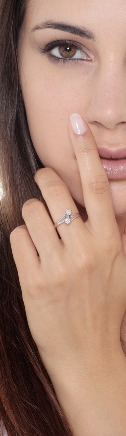 Anillo contrarié en oro blanco 18K con dos diamantes