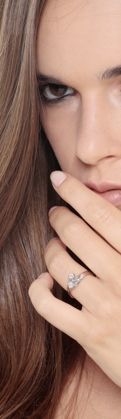 Anillo Tu y Yo en Oro Blanco 18k con Dos Diamantes