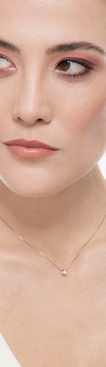 Colgante solitario a bisel oro blanco 18 kilates diamante 0.07 quilates