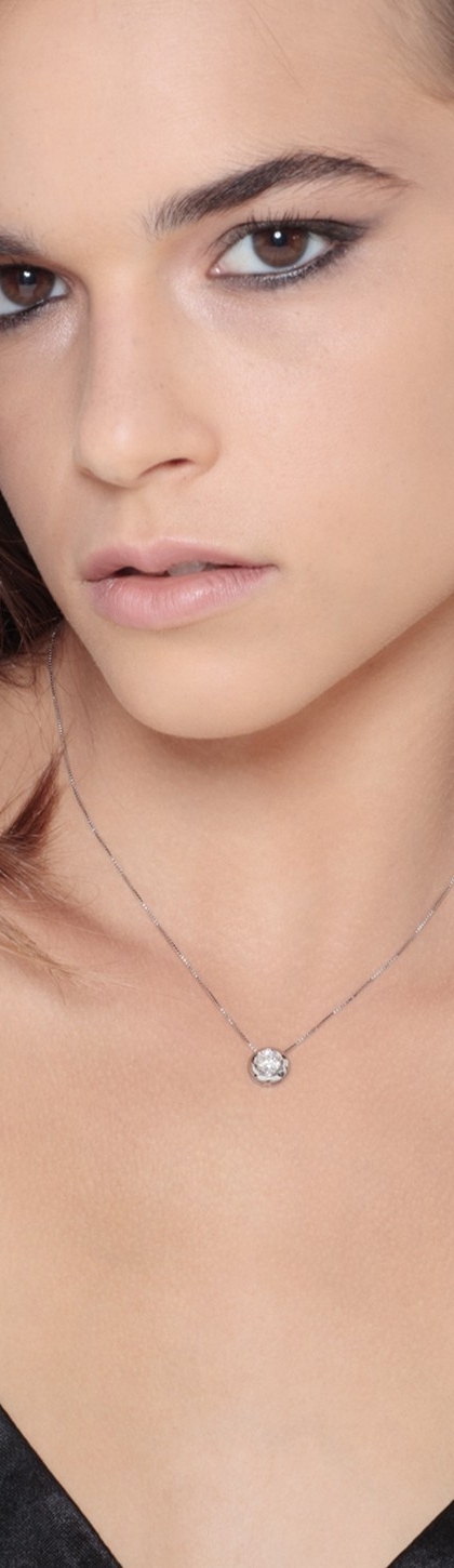 Colgante solitario con diamante engastado con bisel completo en oro blanco 0,50 quilates