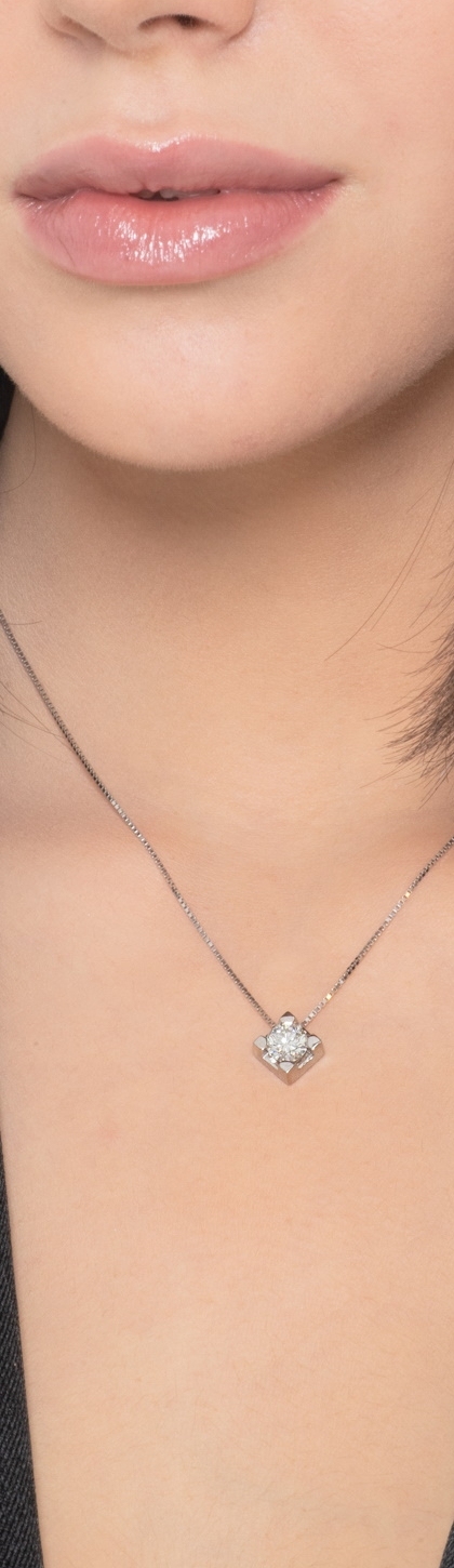 Colgante solitario en oro blanco diamante ct 0,90