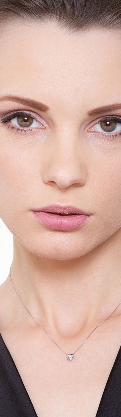 Collar oro blanco mujer de 18 kilates con colgante de corazón de diamantes de 0.04 quilates