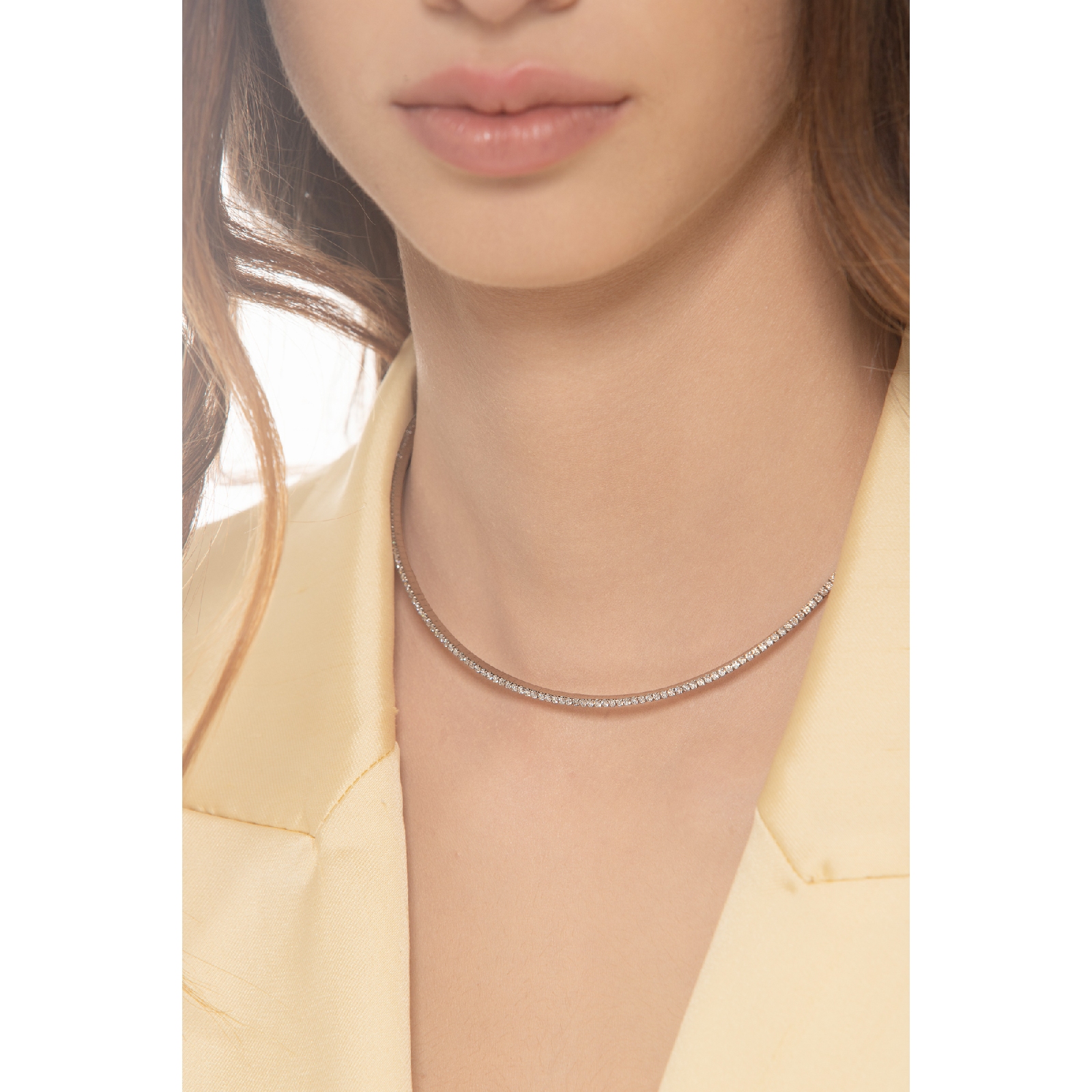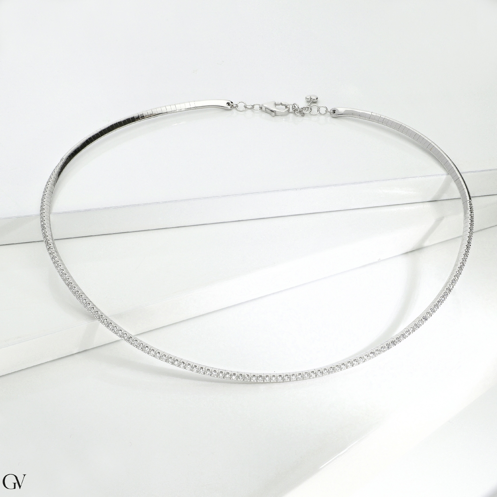 Collar choker rígido en oro blanco y diamantes