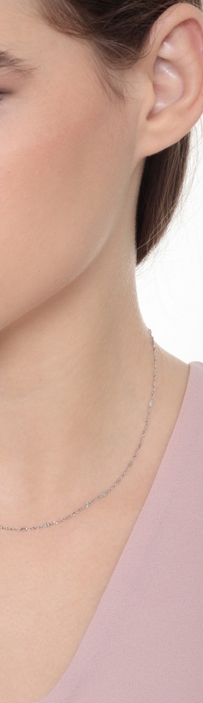 Collar oro blanco 18k con detalles diamantados 40 cm